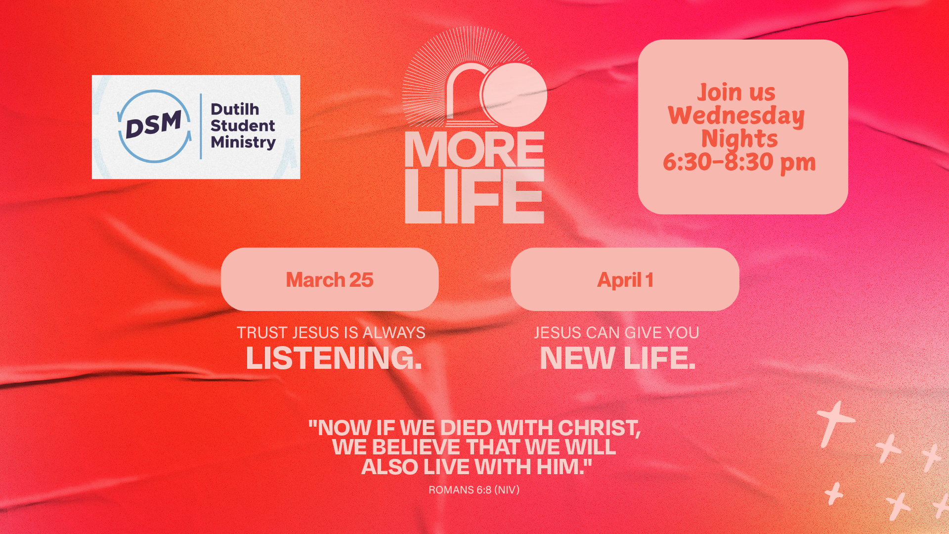 Series Overview – The Easter story is something we celebrate every year, but when was the last time you really thought about what it means for you today? Before Easter morning, there was darkness, grief, and emptiness as Jesus’ followers watched him die. But then, Jesus came back to life, and everything changed for good! In this 2-week series from the Gospels and Epistles, we’ll discover the resurrection didn’t end on Easter Sunday- Jesus is still bringing us more life every day. We’ll see that you can trust God when you’re feeling empty because Jesus’ death wasn’t the end, and you can believe that Jesus can give you new life because resurrection is what Easter is all about.